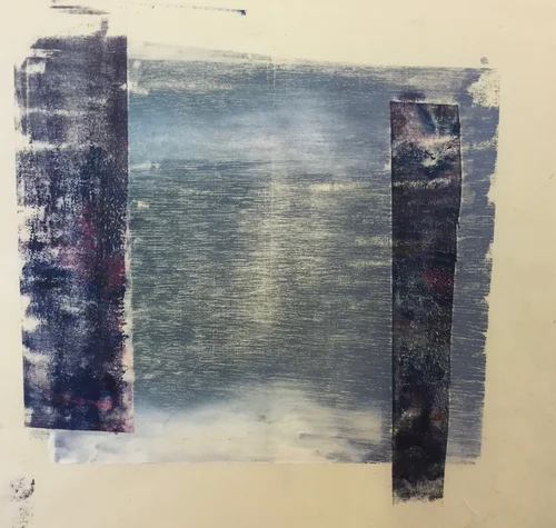 The call of Ballinglen was too much. I returned a year later to do an experimental print-making-course. Once again my work was influenced by rocks, sea stacks, boats bobbing on the waves and the shapes that are fashioned by unseen forces., but this time I worked in a more abstract way.